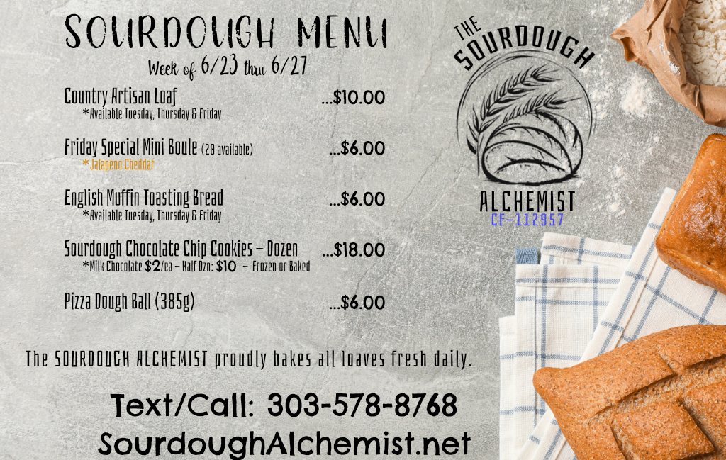 To order, either comment below, Contact me HERE, or text me at 303-578-8768. Tell me what day you’d like a loaf, and I’ll confirm with you by the same method of contact.