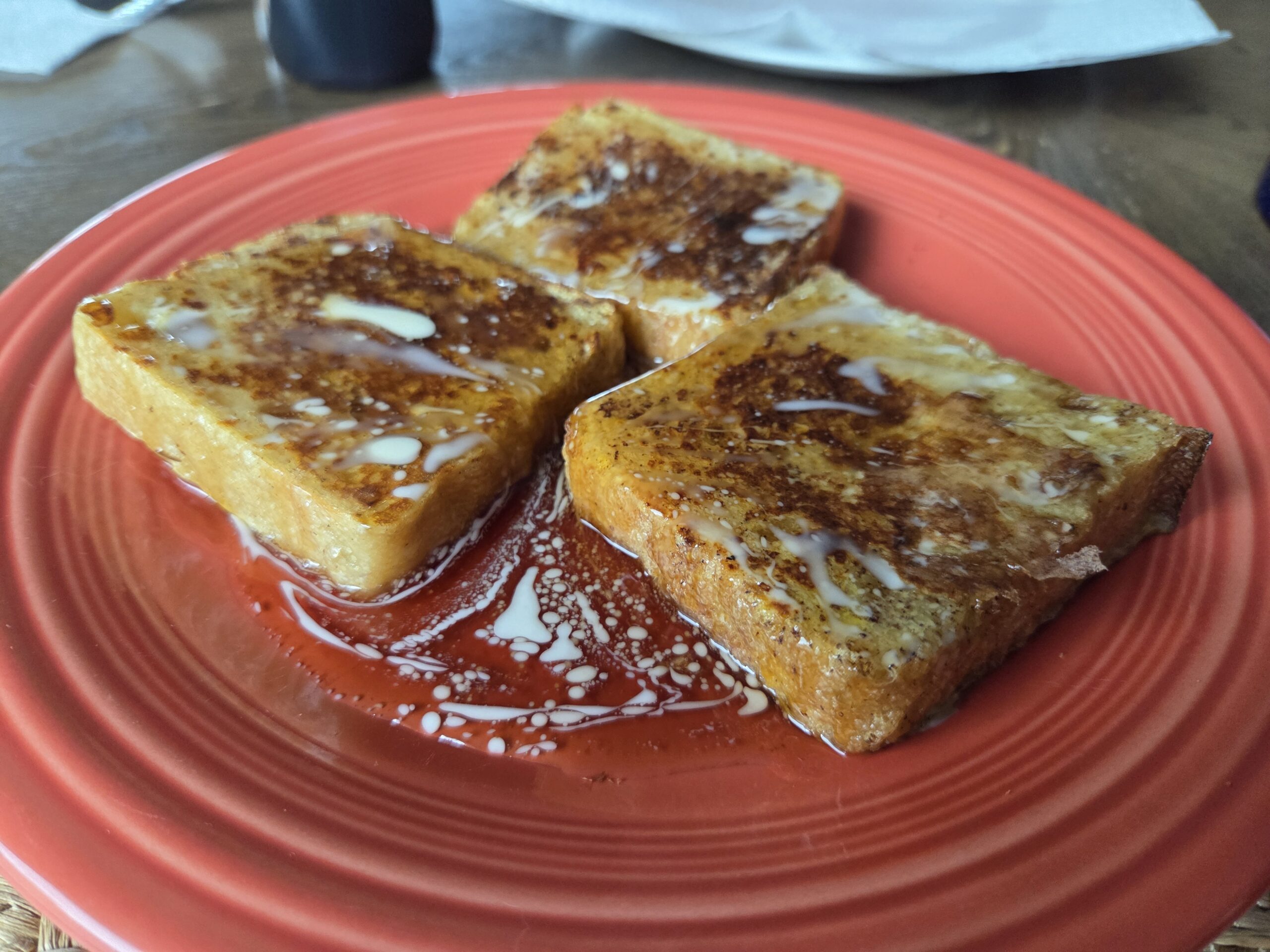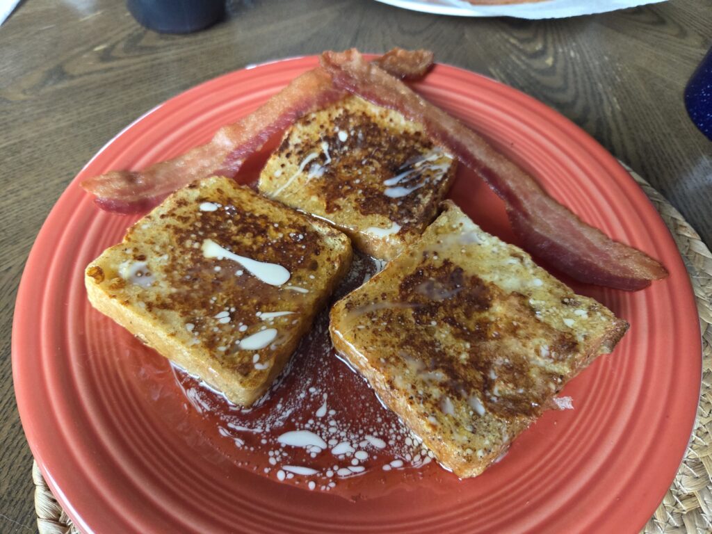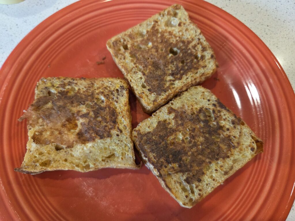 It’s been a bit since I’ve shared The Daily Bake, so here is a shot from Sunday. I’ve heard from a few customers how they use the English Muffin Toasting bread for French Toast and decided to give it a try. Let me just say … WOW! It was so good! I slightly toasted the bread after slicing it and then doused the slices in the egg/cream mix. Wow. Just wow.