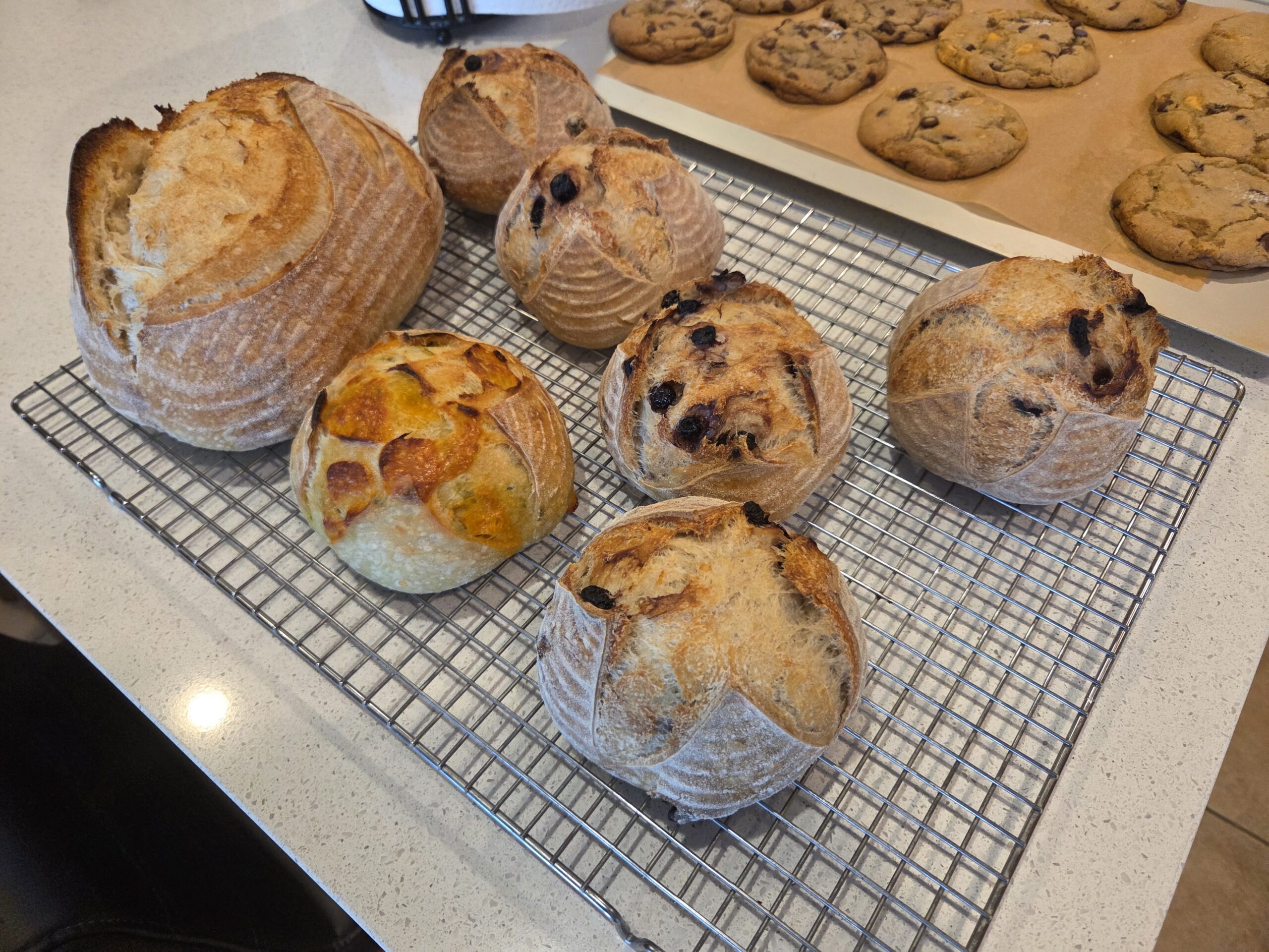 It’s a new month and here are some shots from the first August bake. A few dozen cookies, a regular loaf for my wonderful daughter and a half dozen mini loaves through the ovens today. I have an additional 6 loaves going out tomorrow for a special bake. Fun times.