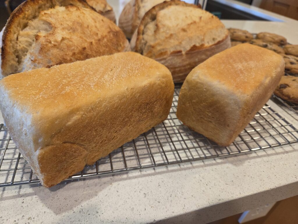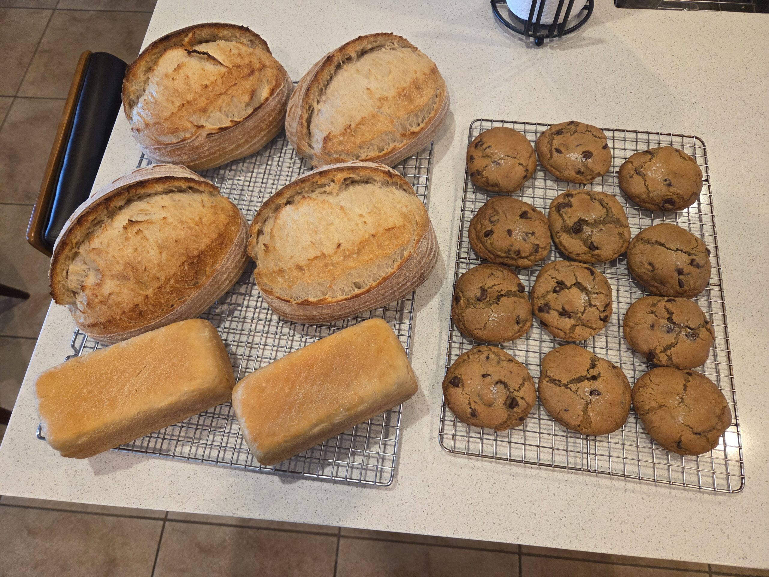 Rare busy Tuesday today. Not swamped, but the most baked bread on a Tuesday in a few months. Six loaves and a dozen cookies through the ovens today.