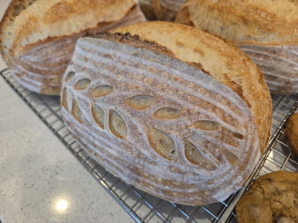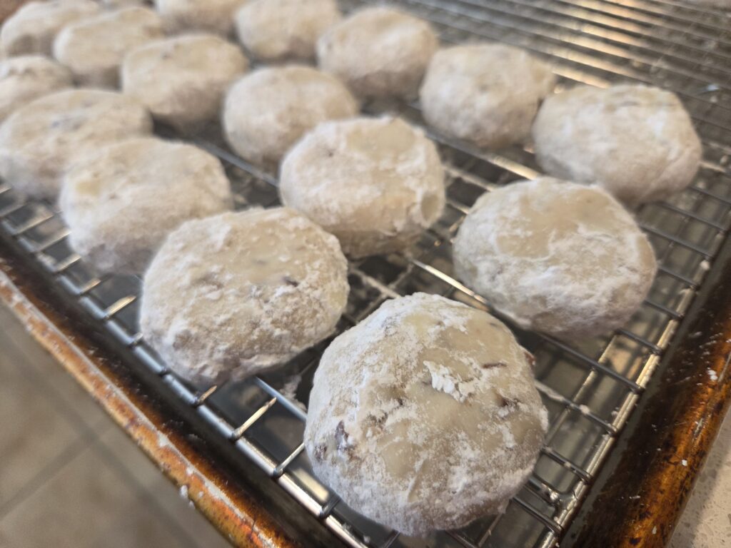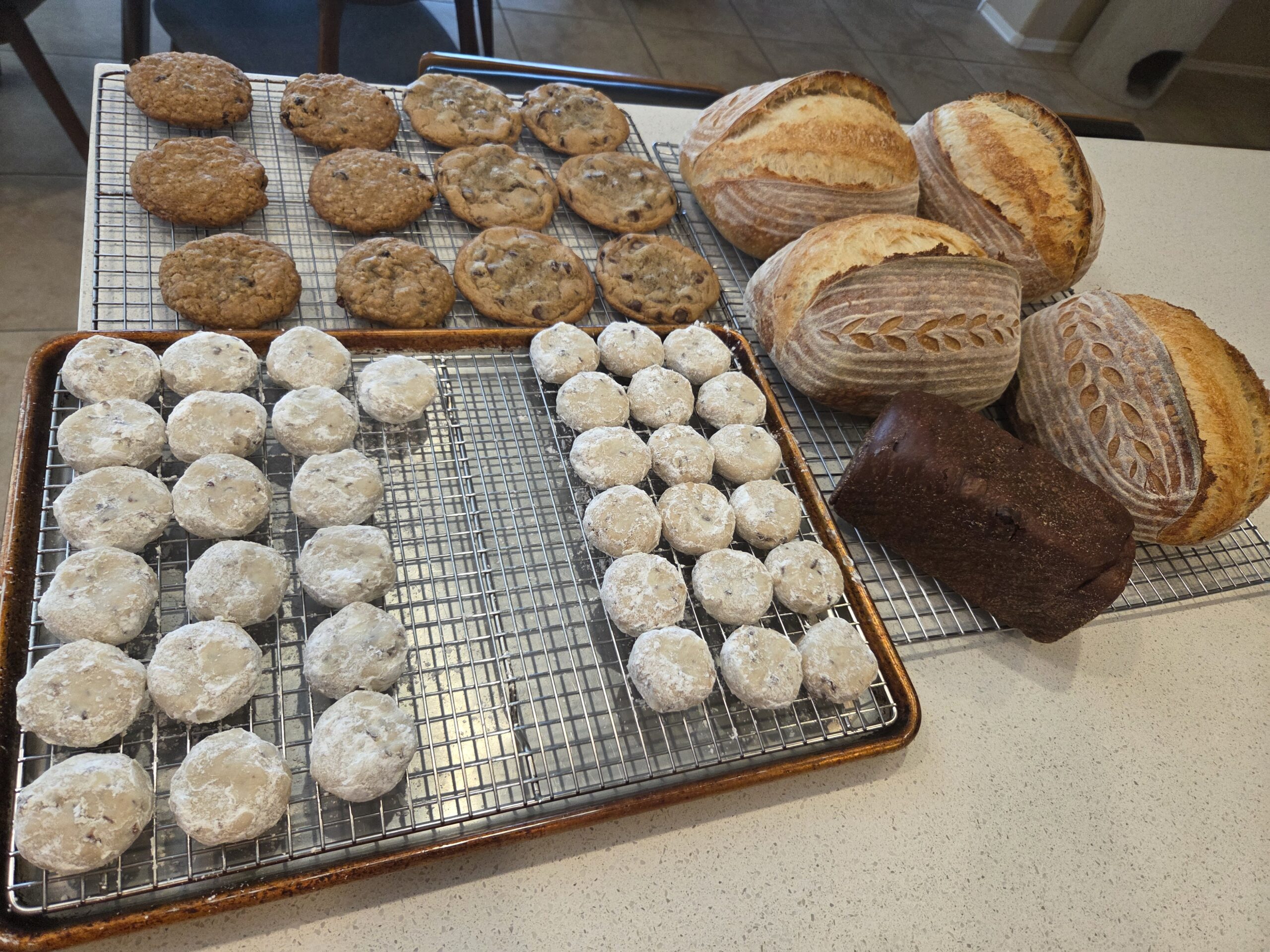 Other than that, I had four BIG loaves, 36 wedding cookies, and a half dozen Sourdough Chocolate Chip cookies through the oven. Not a bad Monday!